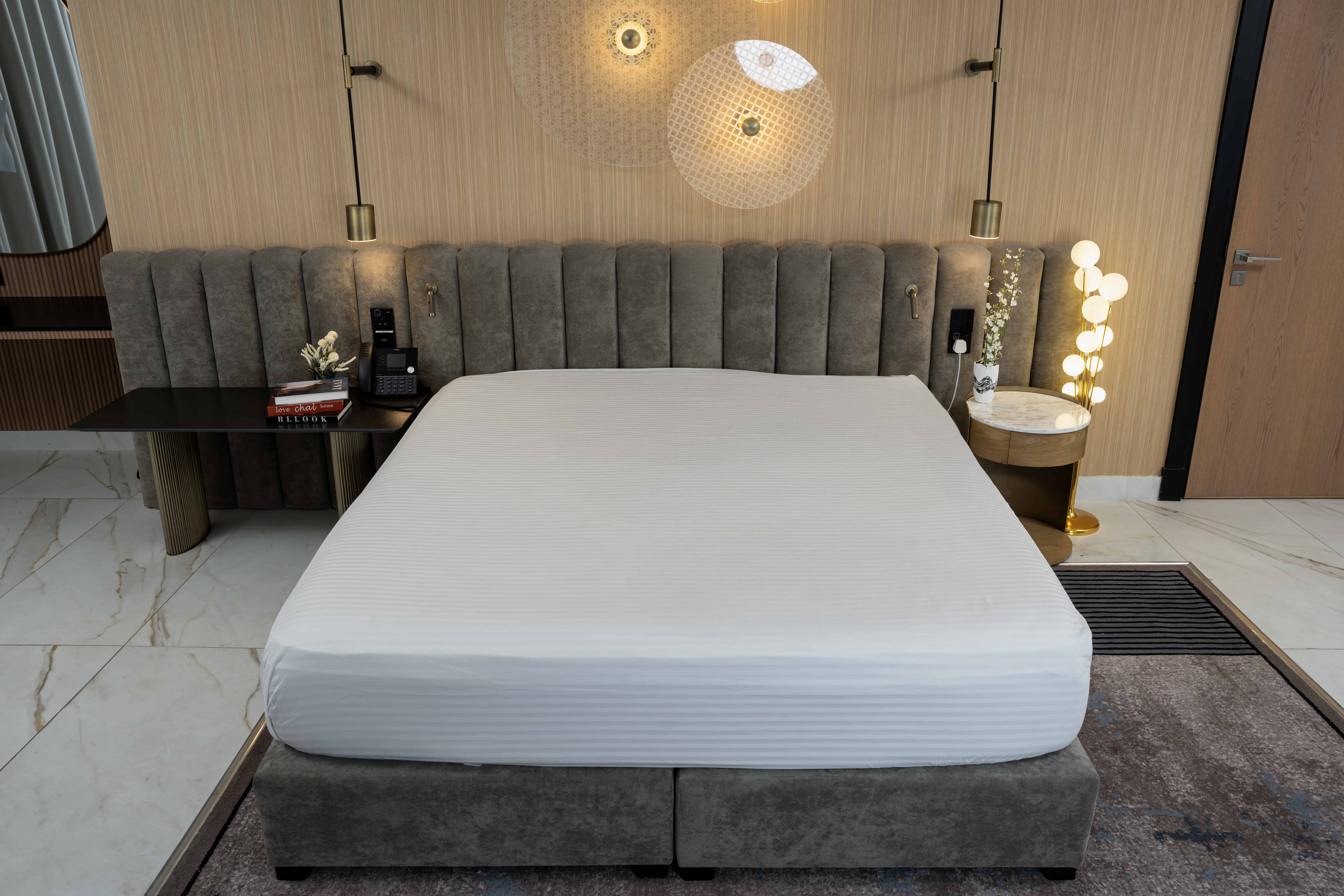 Experience the luxury of a 5-star hotel right in your own home with our Hotel Quality Fitted Sheet. Made from a premium 50% Cotton and 50% Polyester blend, this sheet offers the perfect balance of softness, breathability, and durability. Designed to provide you with the same authentic comfort and quality found in the finest hotels, it delivers a smooth, crisp surface that fits perfectly on your mattress and stays in place throughout the night. Enjoy the ease of maintenance with its wrinkle-resistant fabric, while experiencing the elevated comfort and opulence of a 5-star hotel sleep experience, night after night.
