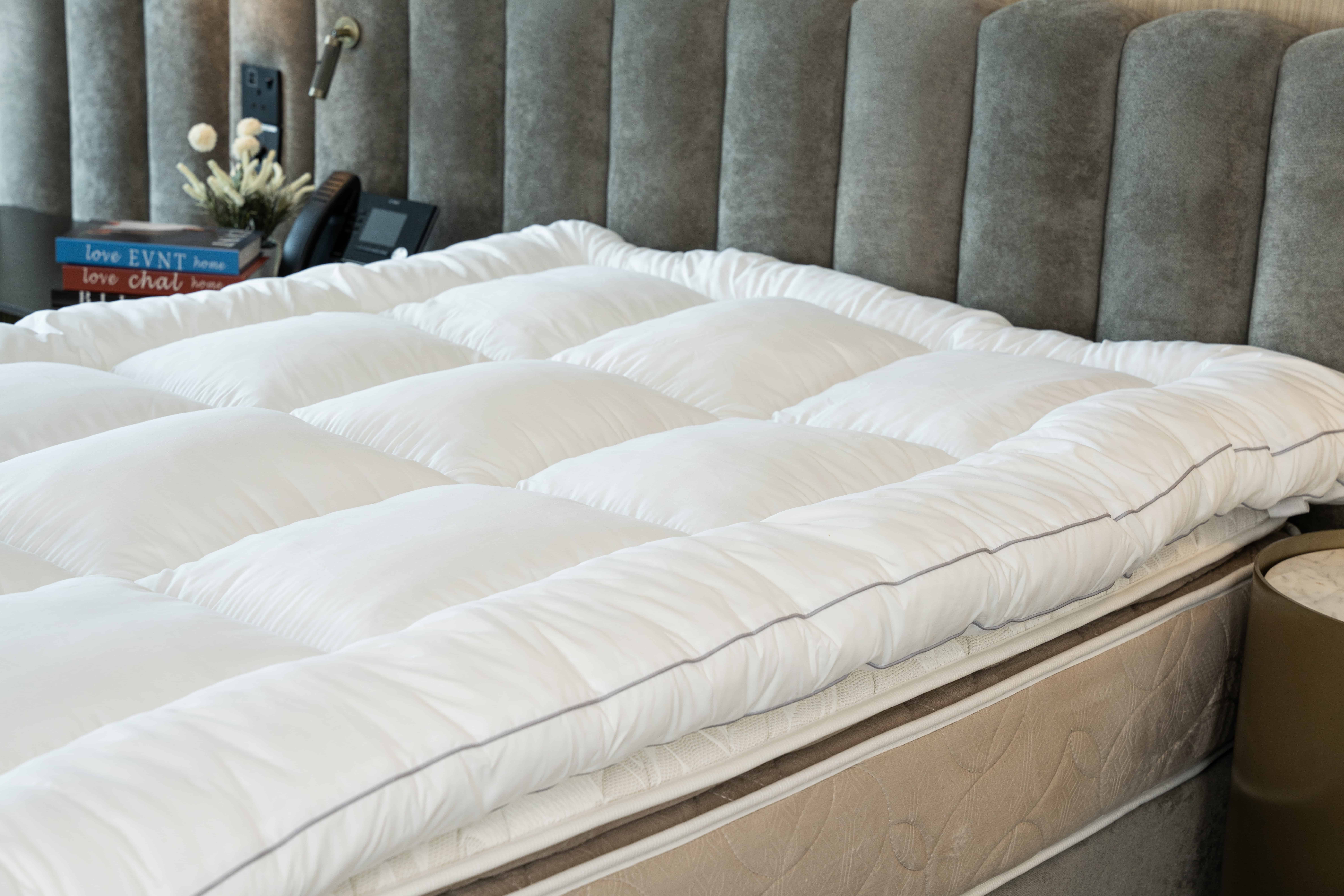 Enhance your sleep experience with our Hotel Quality Mattress Topper, featuring a luxurious microfiber fill and an outer layer made of 100% cotton. The high-quality microfiber fill provides exceptional softness, support, and breathability, while offering a plush, cloud-like feel that transforms any mattress into a cozy retreat. The 100% cotton outer layer adds an extra touch of comfort, offering a smooth, breathable surface that keeps you cool and comfortable throughout the night. Designed for durability and easy care, this mattress topper is hypoallergenic and wrinkle-resistant, ensuring a long-lasting and fresh feel. Ideal for both home and hospitality settings, it delivers the perfect combination of luxury, support, and practicality, making every night feel like a 5-star hotel stay.